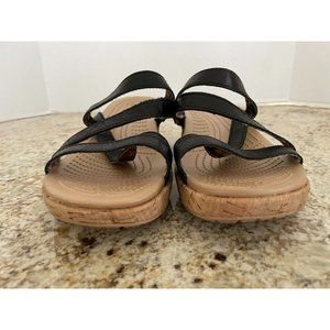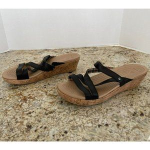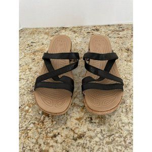 Crocs A-Leigh Wedge Sandals Black Leather, Women's 10