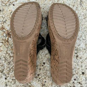 Crocs A-Leigh Wedge Sandals Black Leather, Women's 10. Shoes may have marks, rubs, or wear from use (see photos). Please feel free to message me if you'd like any additional pictures.