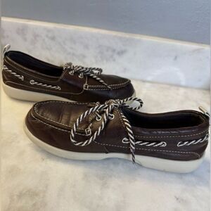 Good Used Condition: These boat shoes are in good used condition, with some wear as shown in the provided images.