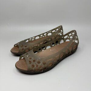 Crocs Adrina Jelly Bronze Brown Slip On Ballet Flat Shoes Womens Sz 9