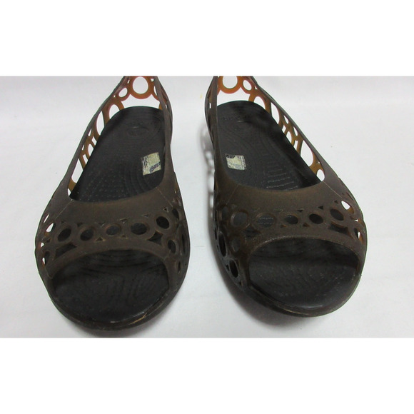 Crocs Adrina Womens Peep Toe Flats Size 9 Bronze Cutout Slip on Jelly Shoes