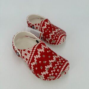 Crocs Adult Classic Clogs Women's 5 Men's 3 Red Holiday Sweater Slip-on Shoes J2