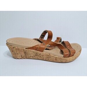 Crocs A-leigh Women's 9 Wedge Sandals Brown Leather Cork Strappy