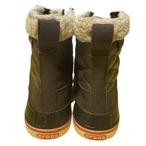 Crocs AllCast Duck Waterproof Boots Womens Size 6 Brown Faux Fur Quilted Winter
