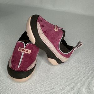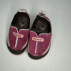 Crocs Baby DAWSON Easy Slip On Shoes Sz 4 Bubblegum Pink Berry Brown Walkers