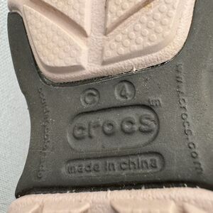 Cute pink walker shoes made by Crocs. Size 4 baby shoe with tread. Perfect for winter when those little feet start toddling all over the place!