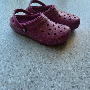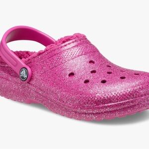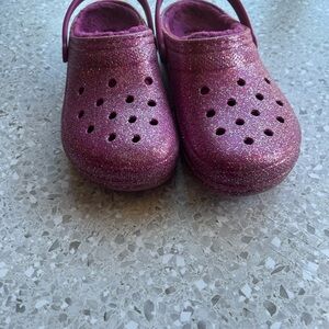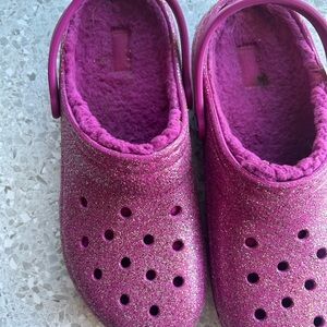 Crocs Baya Lined Fuzzy Pink Glitter Clogs Size 6