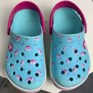Crocs Crocsband Clogs blue white pink flamingo slip-on sandals. Please reference pictures for normal wear