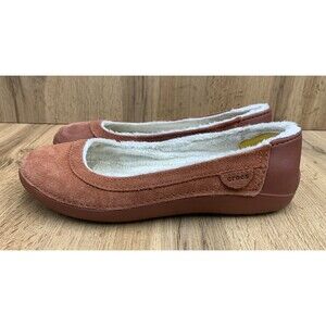 Crocs Berryessa Purple Suede Faux Fur Lined Slip On Ballet Flats Womens Size 8