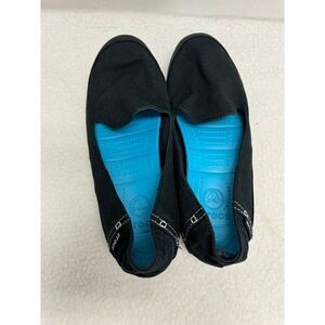 Crocs Black Canvas Slip On Flats Loafers Rounded Toe Rubber Sole Shoes W10