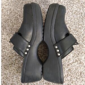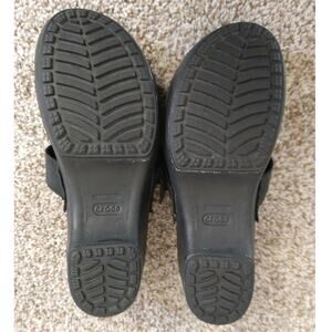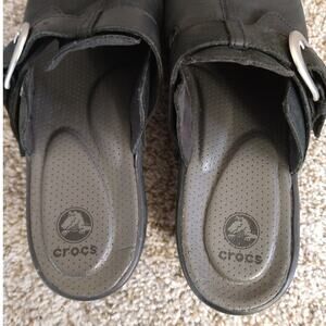 Crocs Black Leather Slip-On Mules Women’s Size 8 Comfort Clogs