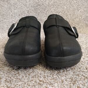 Enjoy effortless comfort with these Crocs Black Leather Slip-On Mules in women’s size 8. Featuring a sleek leather upper with a buckle detail and signature Crocs cushioning, these versatile mules provide all-day support while maintaining a stylish, minimalist design. The easy slip-on style and lightweight sole make them perfect for casual wear, work, or travel. Whether paired with jeans, leggings, or skirts, these mules offer the perfect blend of comfort and functionality.
