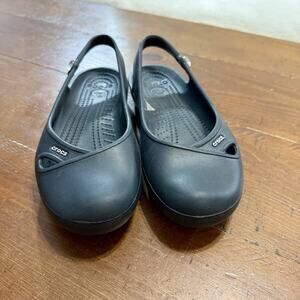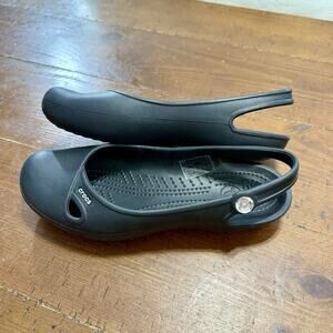 Crocs Black, Rhinestone Olivia Slingback Flats Size 7 Sandals Slip On