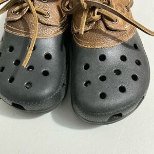 Stylish and comfortable Crocs shoes in black and brown. Perfect for everyday wear. Unisex