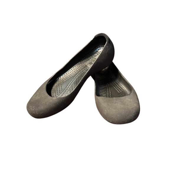 Crocs Black faux suede ballet shoes flats women's size 5 round toe work wearable matte in EUC see pics