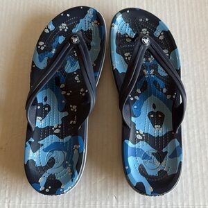 Crocs blue camo croc band flip flops. Size 11. Excellent pre owned condition