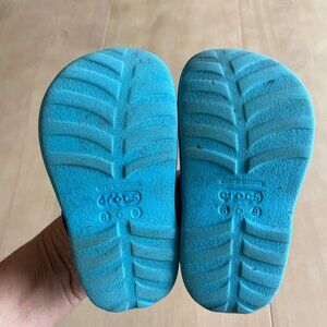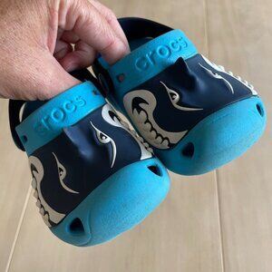 Crocs Blue Shark Toddler Kid Boy Girl Clog Waterproof Sandals - Size 8/9. In good gently used condition with some wear.