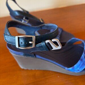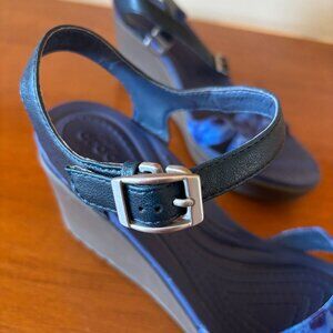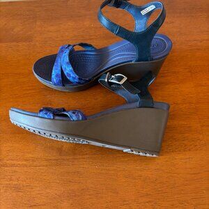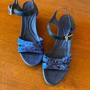 Crocs Blue tie Dye leigh wedge heel canvas adjustable strap slip on sz w10