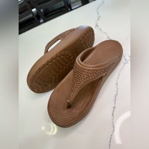 Crocs Boca Bling Brown Thong Wedge Flip Flop Sandal Women's 6 Glitter Beads