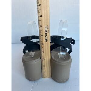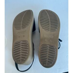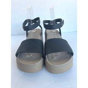 Crocs Brooklyn Black and Tan Criss Cross Ankle Strap Wedge Comfort Sandals Sz 10