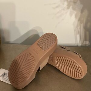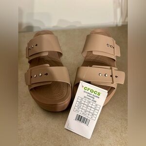 Experience comfort with CROCS platform sandals. Stylish beige design. Ideal for casual wear.