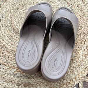 Crocs Brooklyn High Shine Slide Heel Latte Tan Women's size 10
