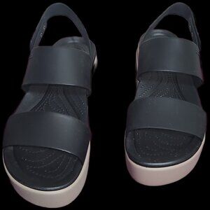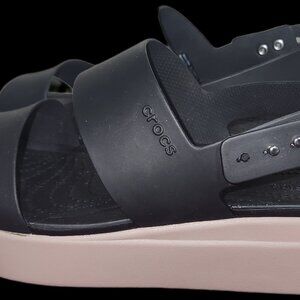 Black Crocs Brooklyn Low Wedge Heel Sandals size 9.