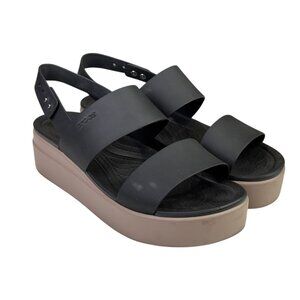 Crocs Brooklyn Low Wedge Sandals Womens 11 Black Tan LiteRide Platform Shoes