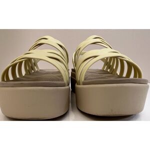 Crocs Brooklyn Strappy Low Wedge Sandals in Bone. Size 8(W).