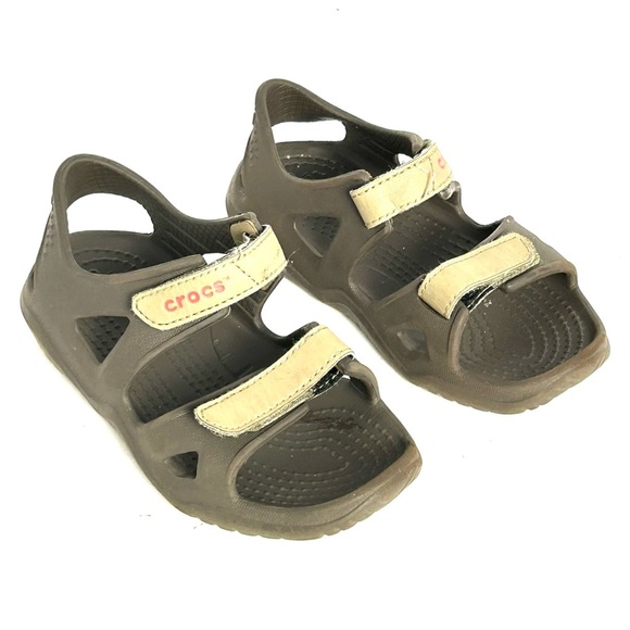 Crocs Brown Sandal Toddler Kids Size C10 Hook Loop Shoes