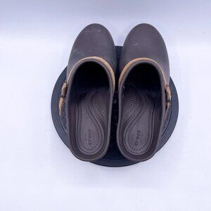 Item name: Crocs Brown Sarah Clog Womens 9 Heel Dual Comfort Mules Suede Leather Strap Shoe