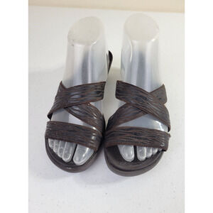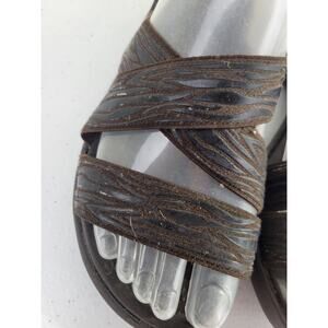 Crocs Brown Textured Zebra Print Strappy Slip On Sandals Women's Sz 7