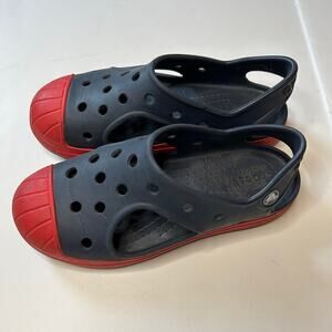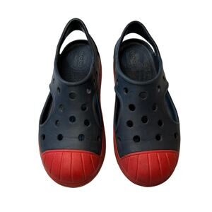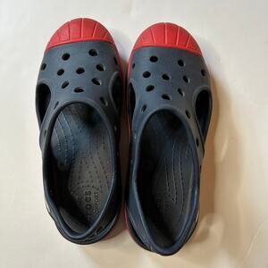 Super cute Crocs Bump It Blue/Red Rubber Slip-On Sandals. Perfect for summer. Good used condition. Smoke free and pet friendly (non-shedding) home.