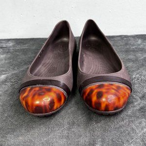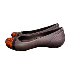Crocs Cap Toe Tortoiseshell Flats Slip on Shoes size 9 Brown Comfort Closed Toe