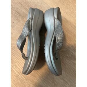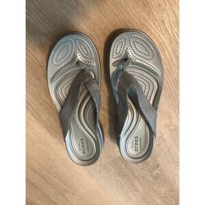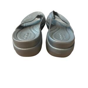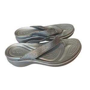 Crocs Capri Metallic Wedge Flip Shoes Womens Size 8 Silver Dual Comfort Sandals