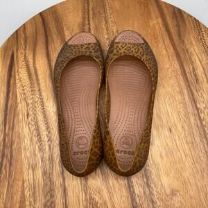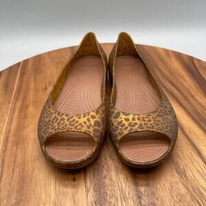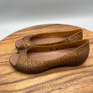 Crocs Carlie Ballet Falts Womens Size 6 Leopard Print Ladies Peep Toe Sandals