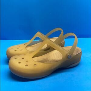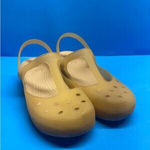 Crocs Carlie Clogs Golden Glitter Cout out Dots T Strap Sandals Size 8