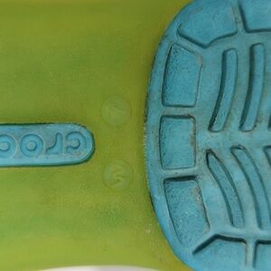 Green upper with blue sole. Iconic Crocs comfort sole. Some divets in the sole and insole and some small dirt spots (see photos). Otherwise in great condition.