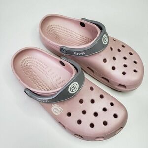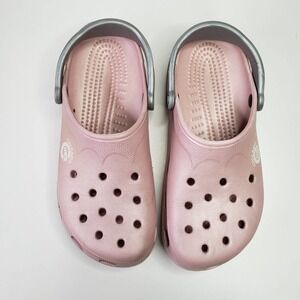 Key features: light pink classic clogs, silver strap, Cubbie C logo