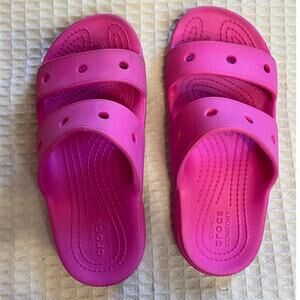 Crocs Children’s Bright Pink Open Toed Slip On Slides Size J2
