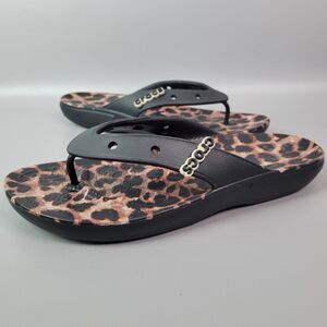 Crocs Classic Animal Remix Flip Flops Black Leopard Men's Size 12 Slide