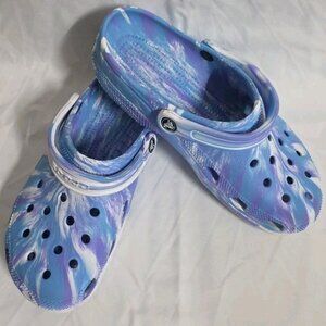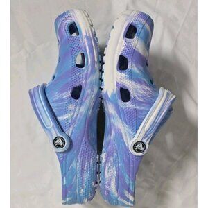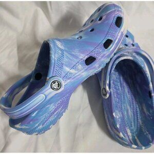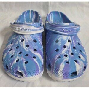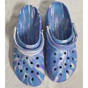 Crocs Classic Blue White Tye Dye Mens Size 9 Womens 11 Unisex EUC 206867 Marbled