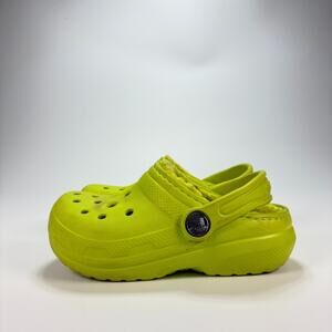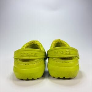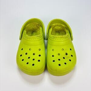 Crocs Classic Clogs Lime Green Faux Fur Lined Winter Warm Slip On Youth Size 9