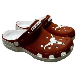 Show off your Texas pride in comfort and style with these Crocs Classic Clogs featuring the University of Texas Longhorns colors. These unisex clogs come in a bold burnt orange and white design with signature Crocs comfort—lightweight, breathable, and water-friendly. Perfect for game day, tailgates, or everyday wear. Size Women’s 8 / Men’s 6.