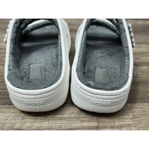 Crocs Classic Cozzzy White Fuzzy Two Strap Sandals Women’s Size 8 Casual Comfort