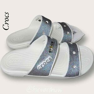 This is a listing for NEW Crocs Classic Croc Glitter II Sandal Multi Colored sparkle in size M6 / W8.