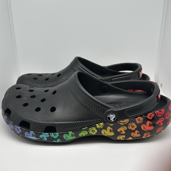 Crocs Classic Disney Rainbow Pride Celebration Mickey Unisex Black Multi Slip on shoes Size 11