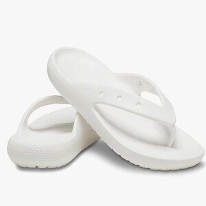 Enjoy effortless comfort and style with these Crocs Classic Flip Sandals in crisp white. Designed with soft Croslite™ foam cushioning, these lightweight flip-flops offer superior comfort and support for everyday wear. Perfect for the beach, pool, or casual outings, they feature a flexible sole, easy slip-on design, and signature Crocs durability. Water-friendly, quick-drying, and easy to clean—these sandals are your go-to for warm-weather comfort and laid-back style.