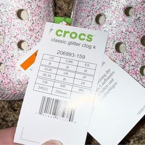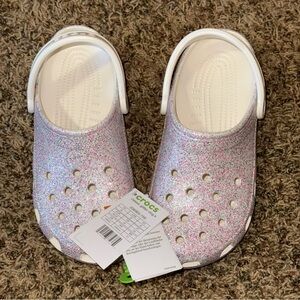 Crocs Classic Glitter Clog Big Kids Size J6 Oyster Unicorn Cotton Candy Child