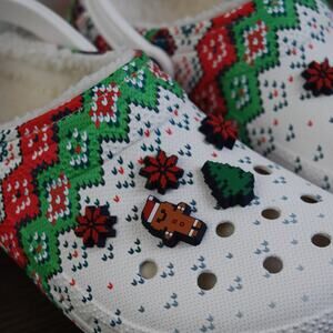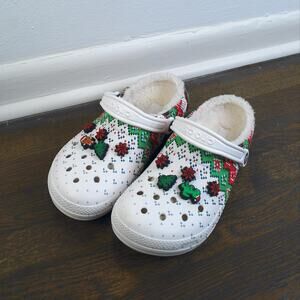 Crocs Classic Holiday Lined Clog Christmas Ugly Sweater Charm White M8 W10